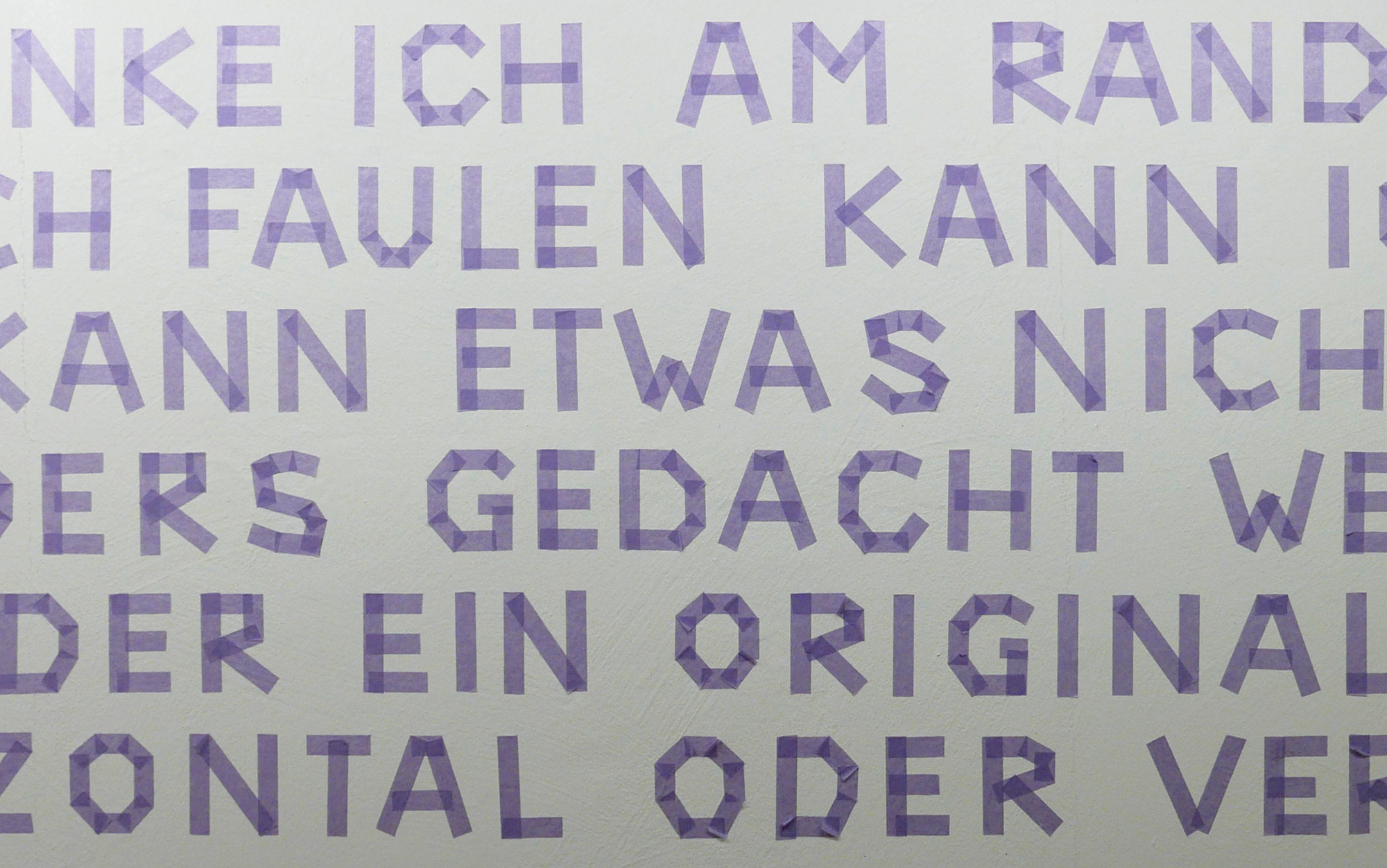 Buchstaben (Versalienhöhe 13 cm) aus Klebeband, direkt auf die Mauer geklebt
