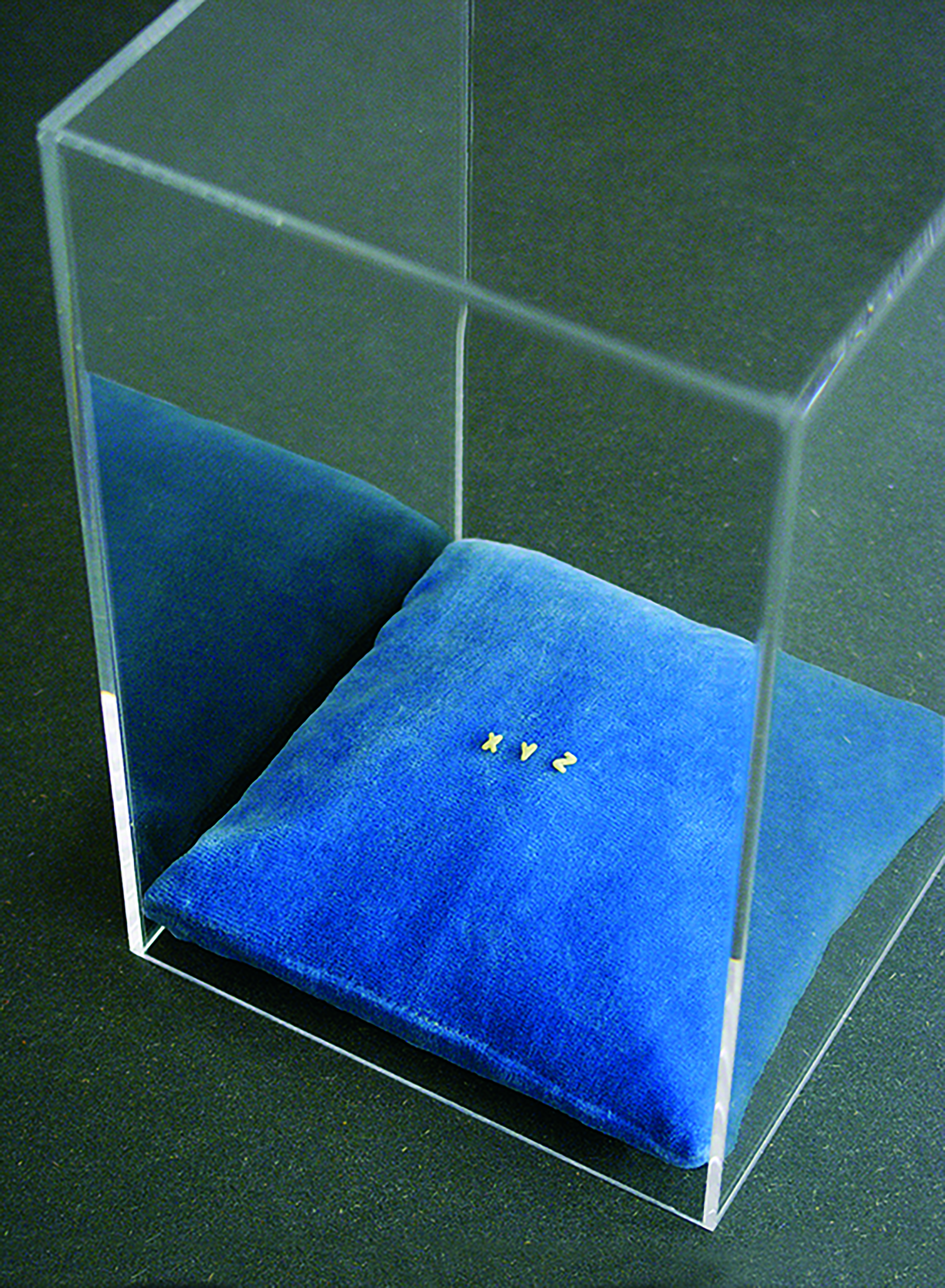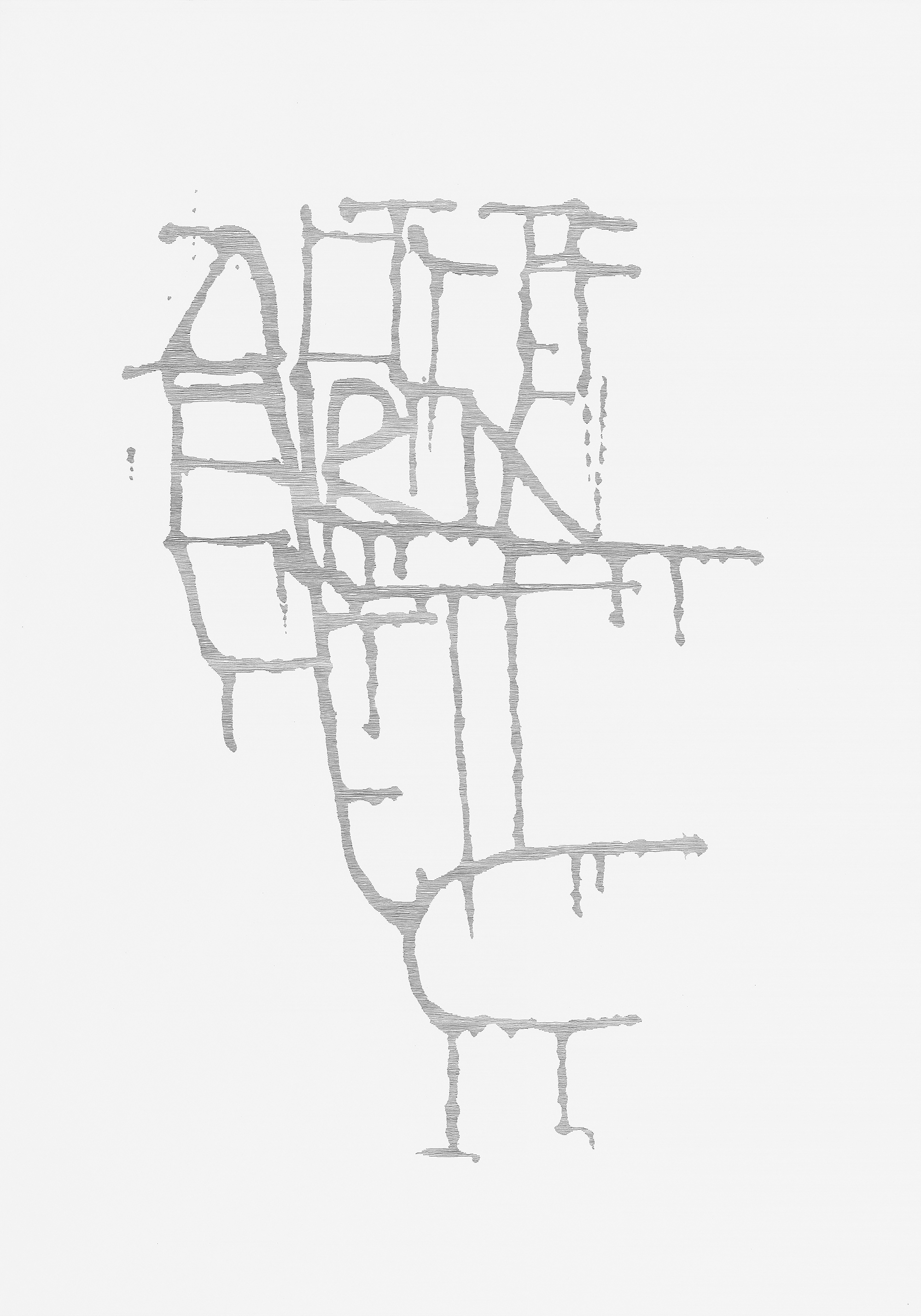 Text auf zwei ineinander verschlungenen Bändern, Stirling-Silber, 245 × 1.8 cm und 150 × 1.8 cm