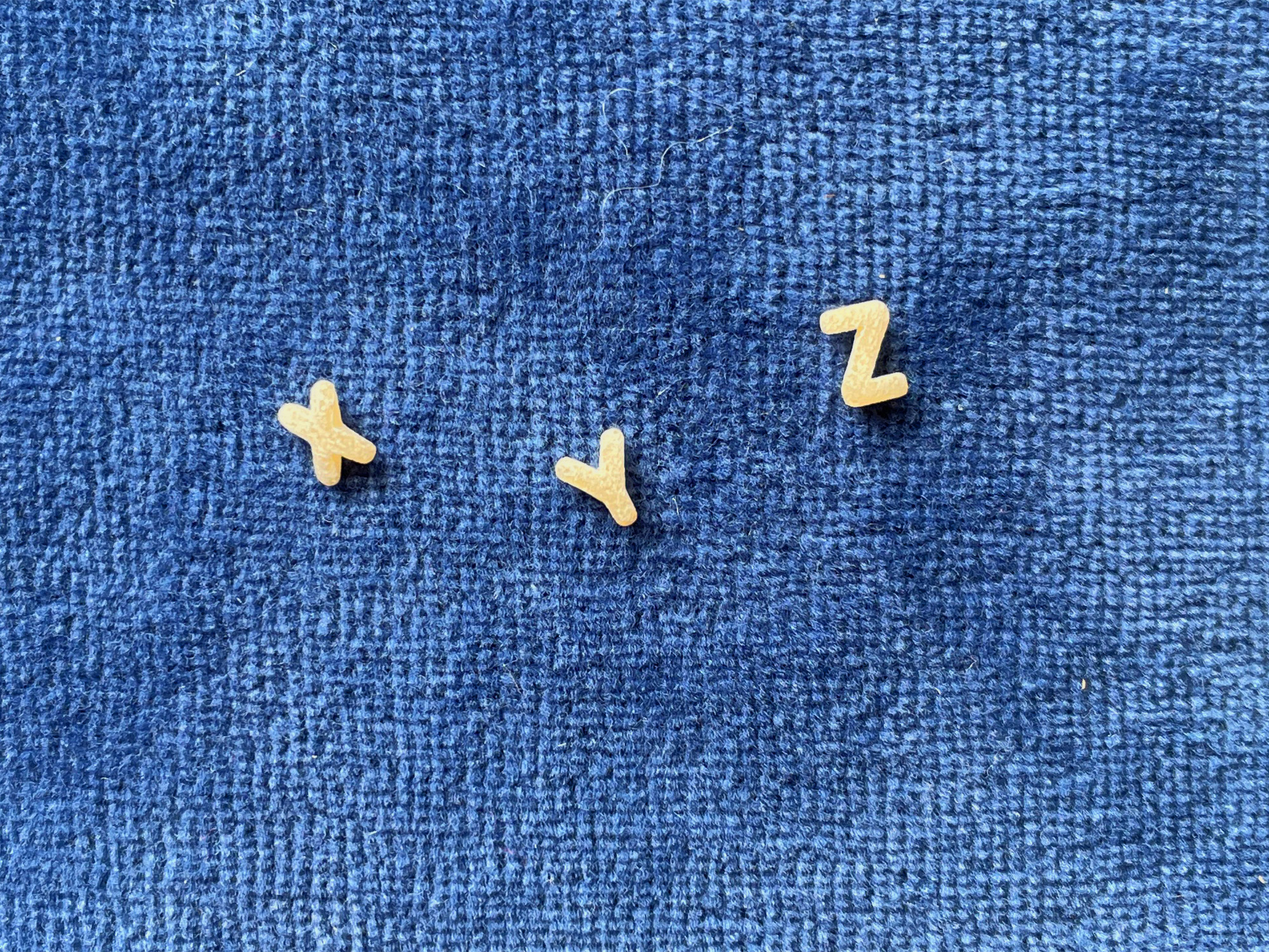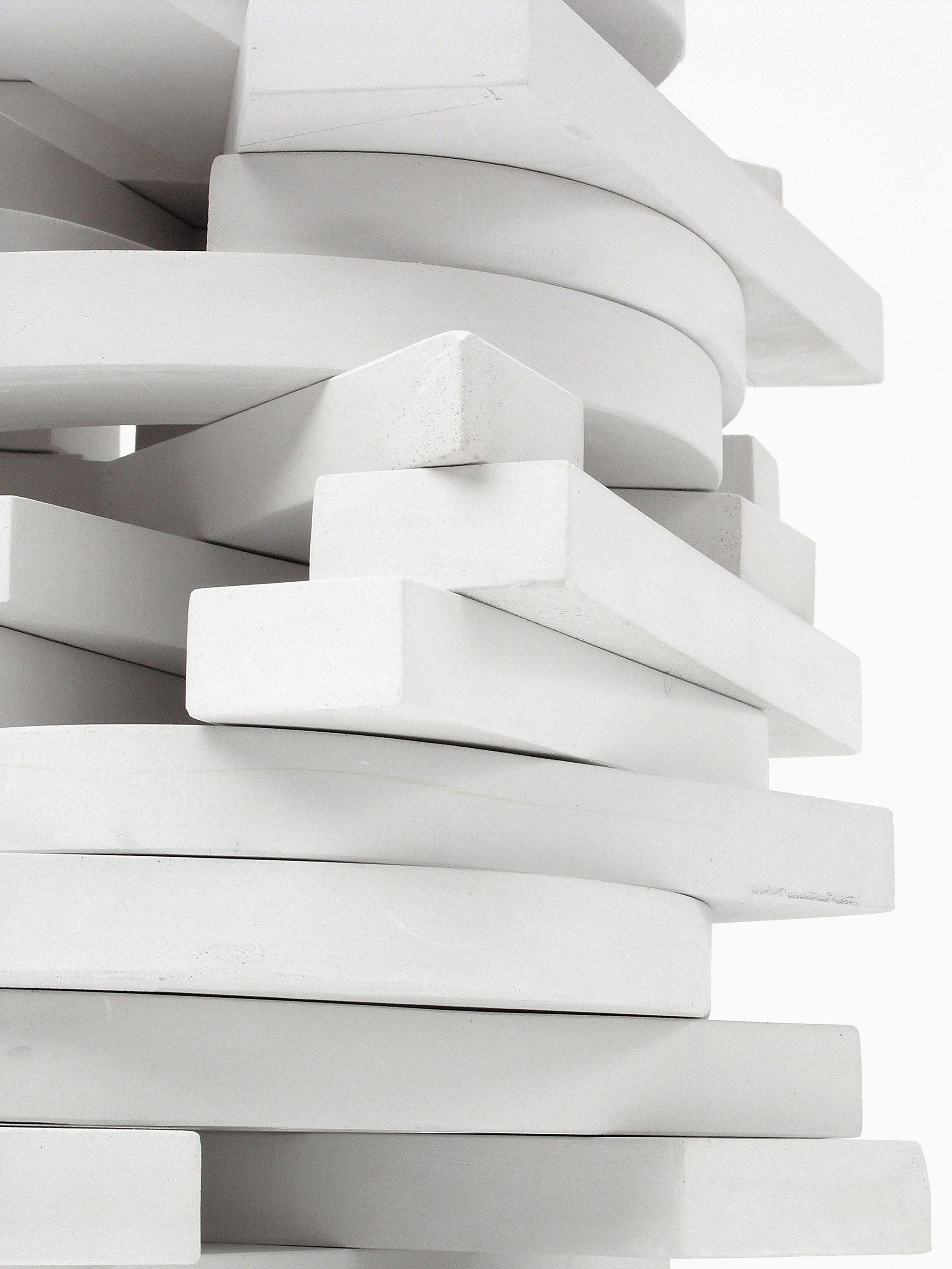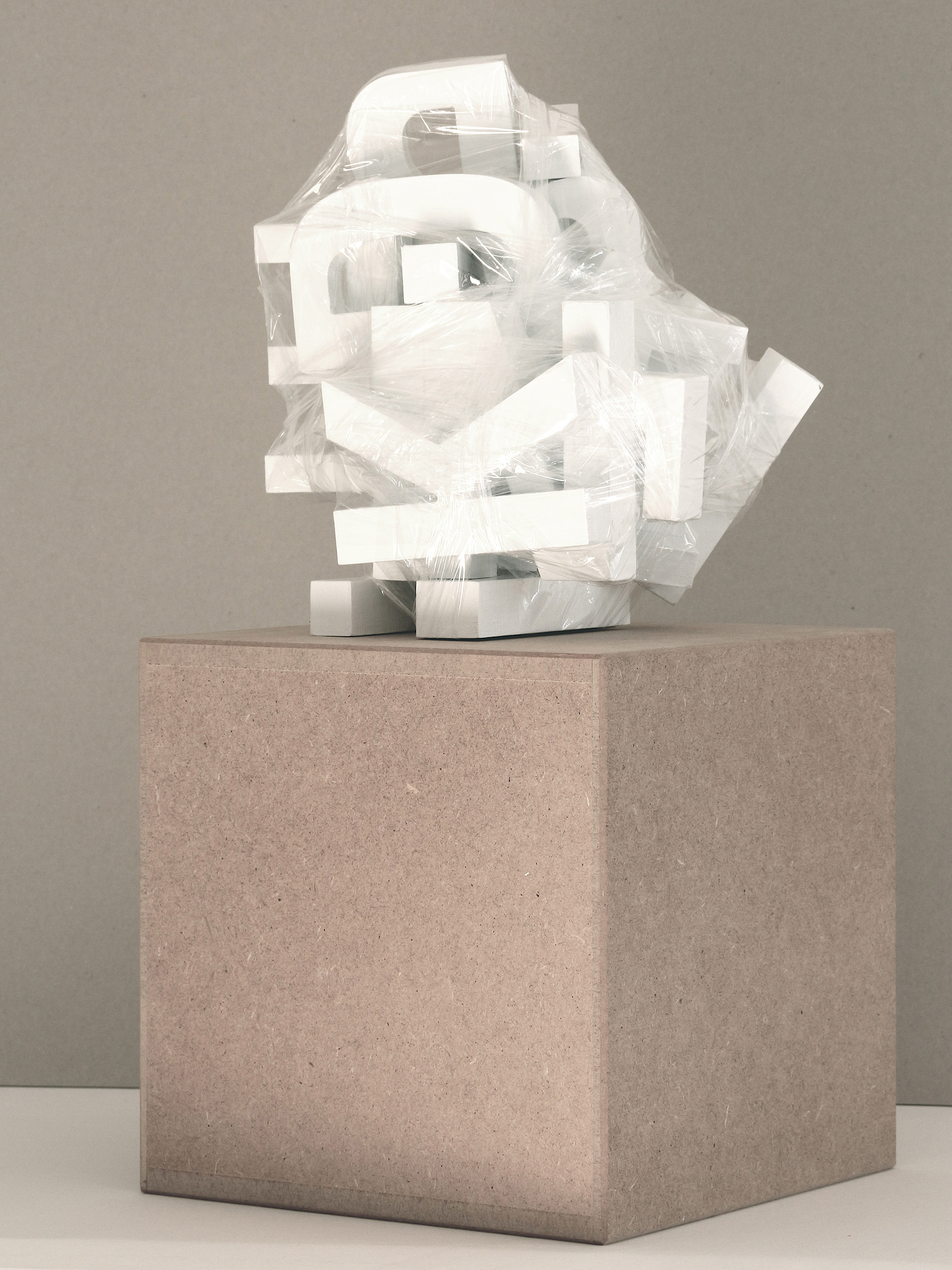 Fotoaufnahmen von aufeinander gelegten Buchstaben (aus Gips gegossen, 20 × 2 cm)