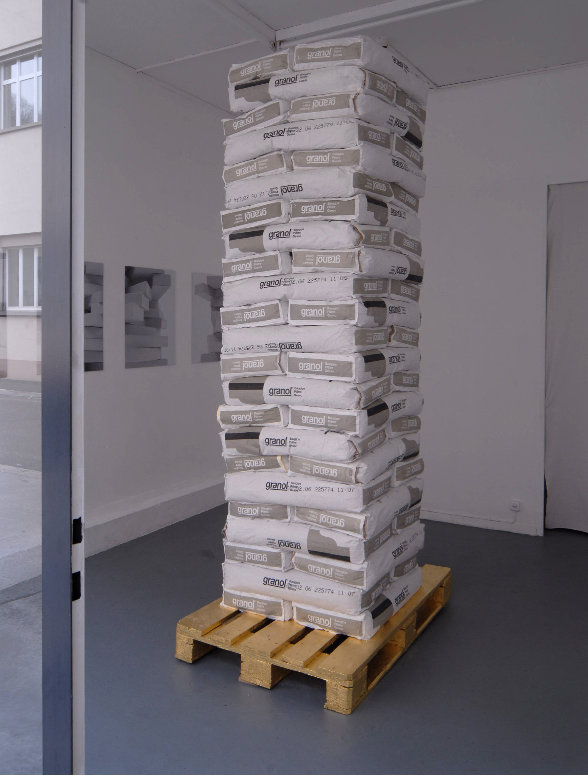 46 Papiersäcke mit Gips der gleichen Sorte, die zum Giessen der Buchstaben benutzt wurde