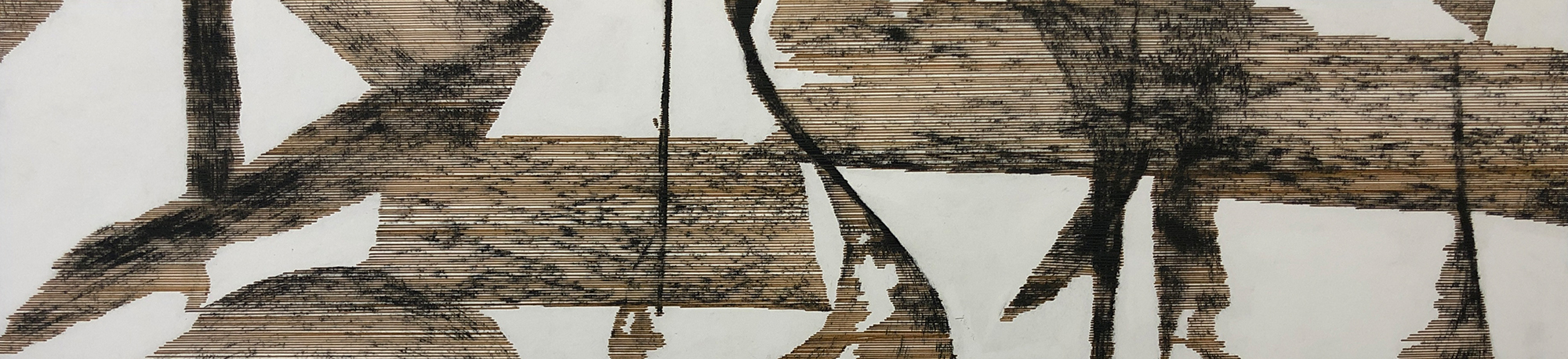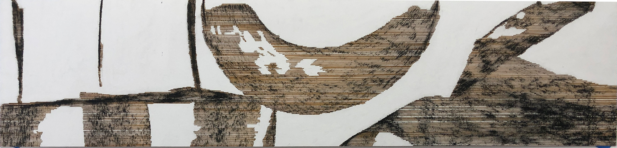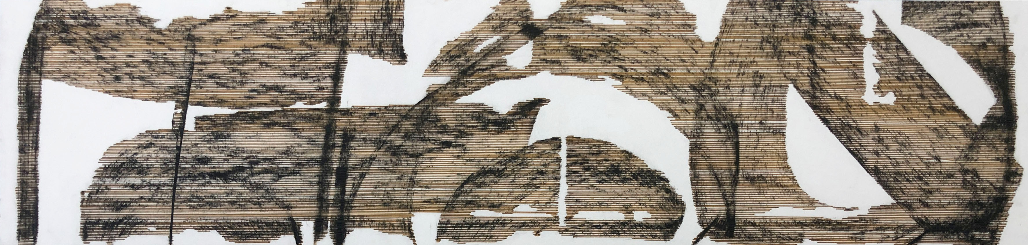 Kohle und Tusche (Umbra) auf Bristolkarton, je 17 × 70 cm, hinter Glas auf Holzleiste stehend
