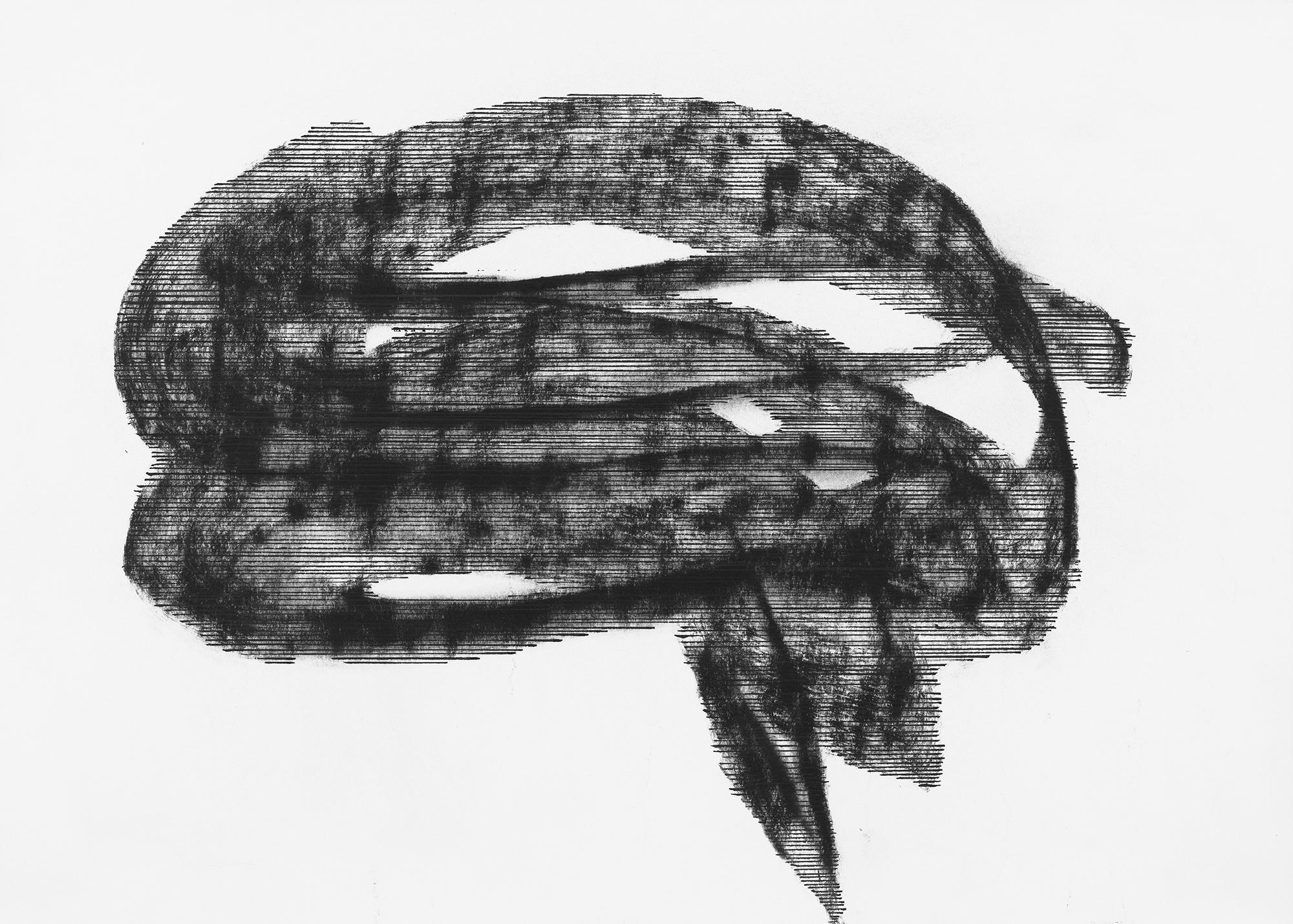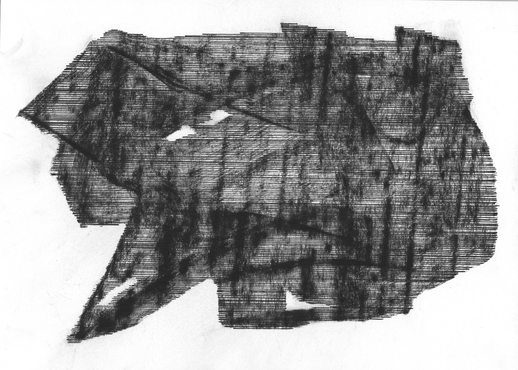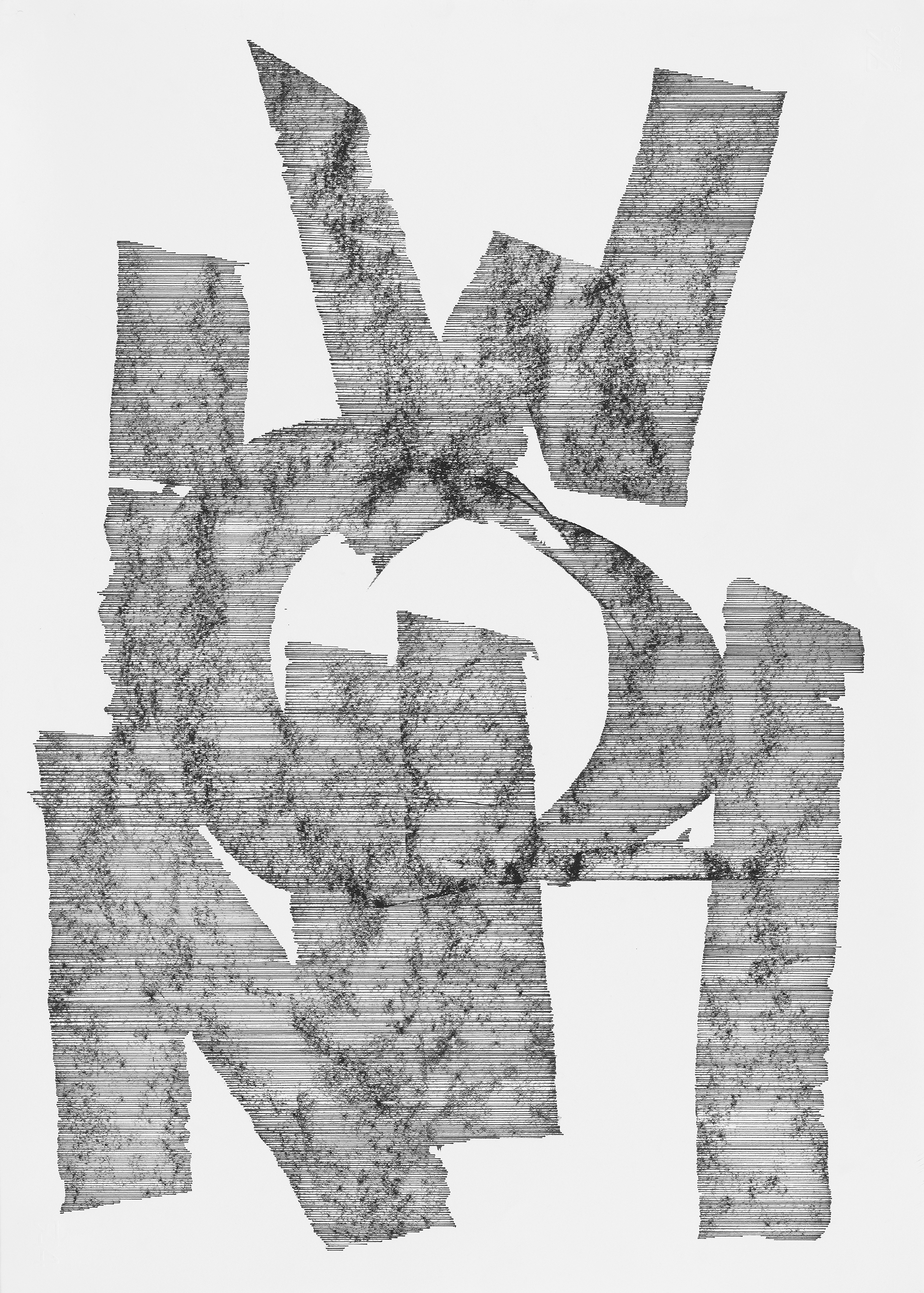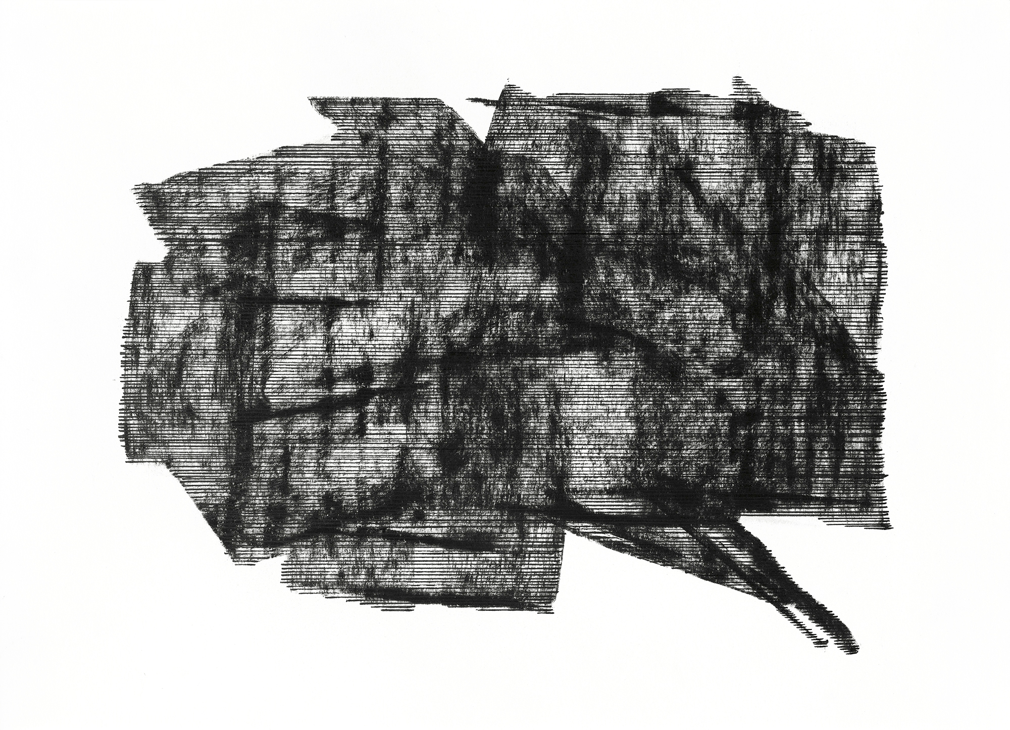 Kohle und darüber Tuschelinien auf Papier, 50 × 70 cm, 100 × 70 cm und diverse Formate