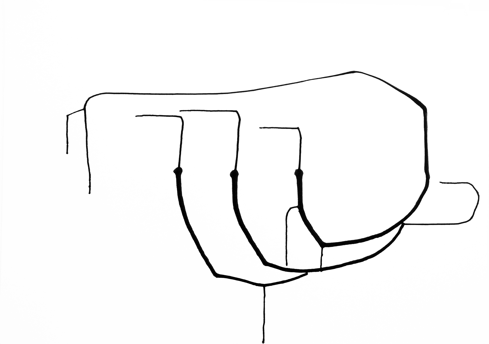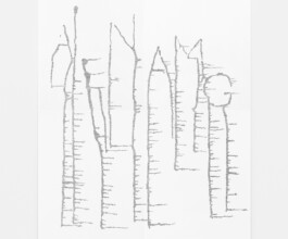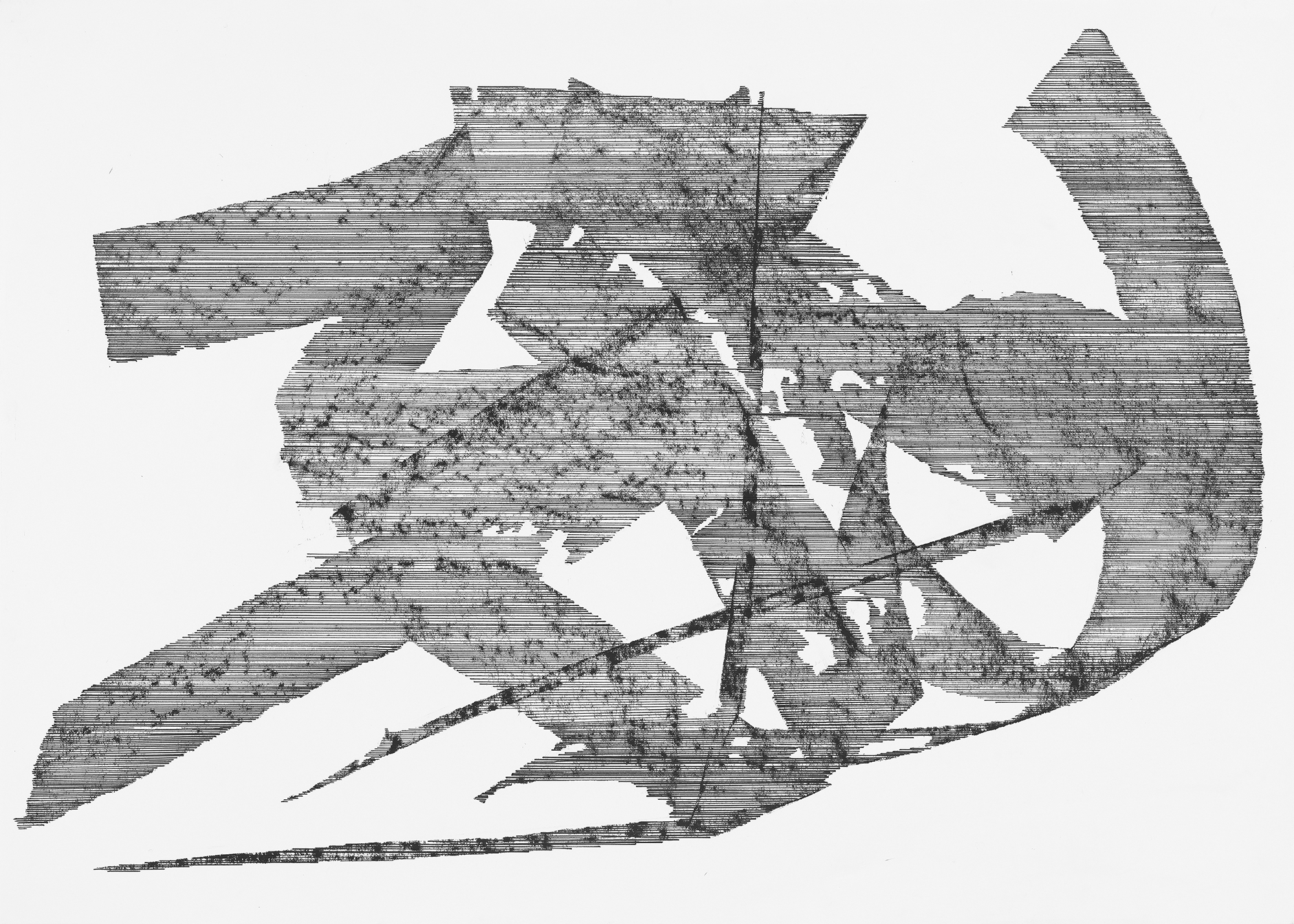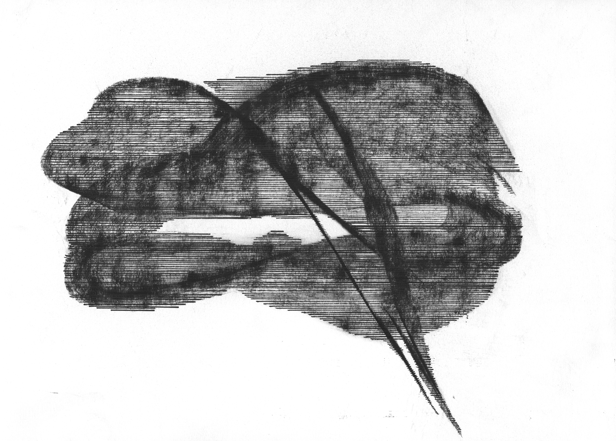 Kohle und darüber Tuschelinien auf Papier, 50 × 70 cm, 100 × 70 cm und diverse Formate