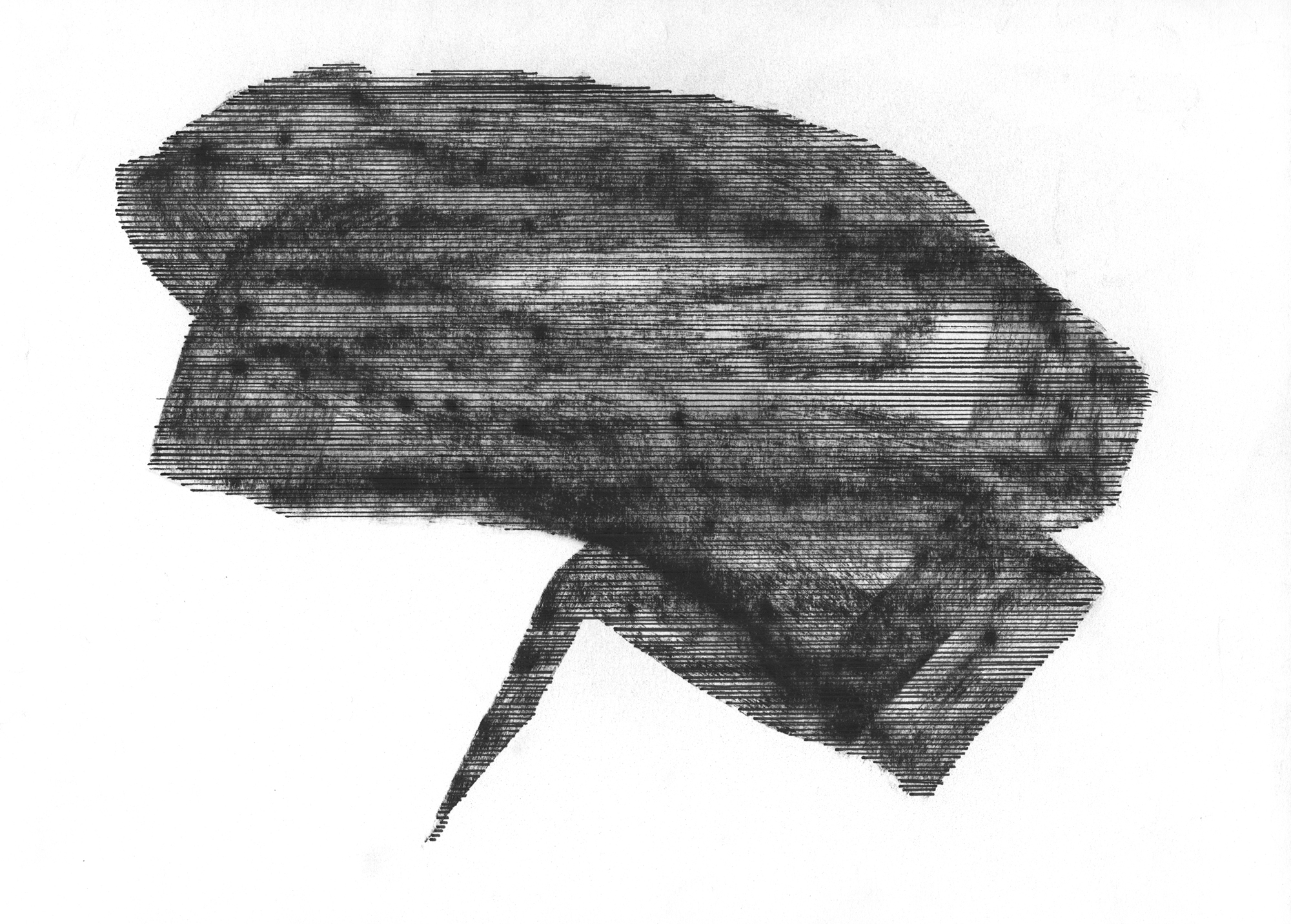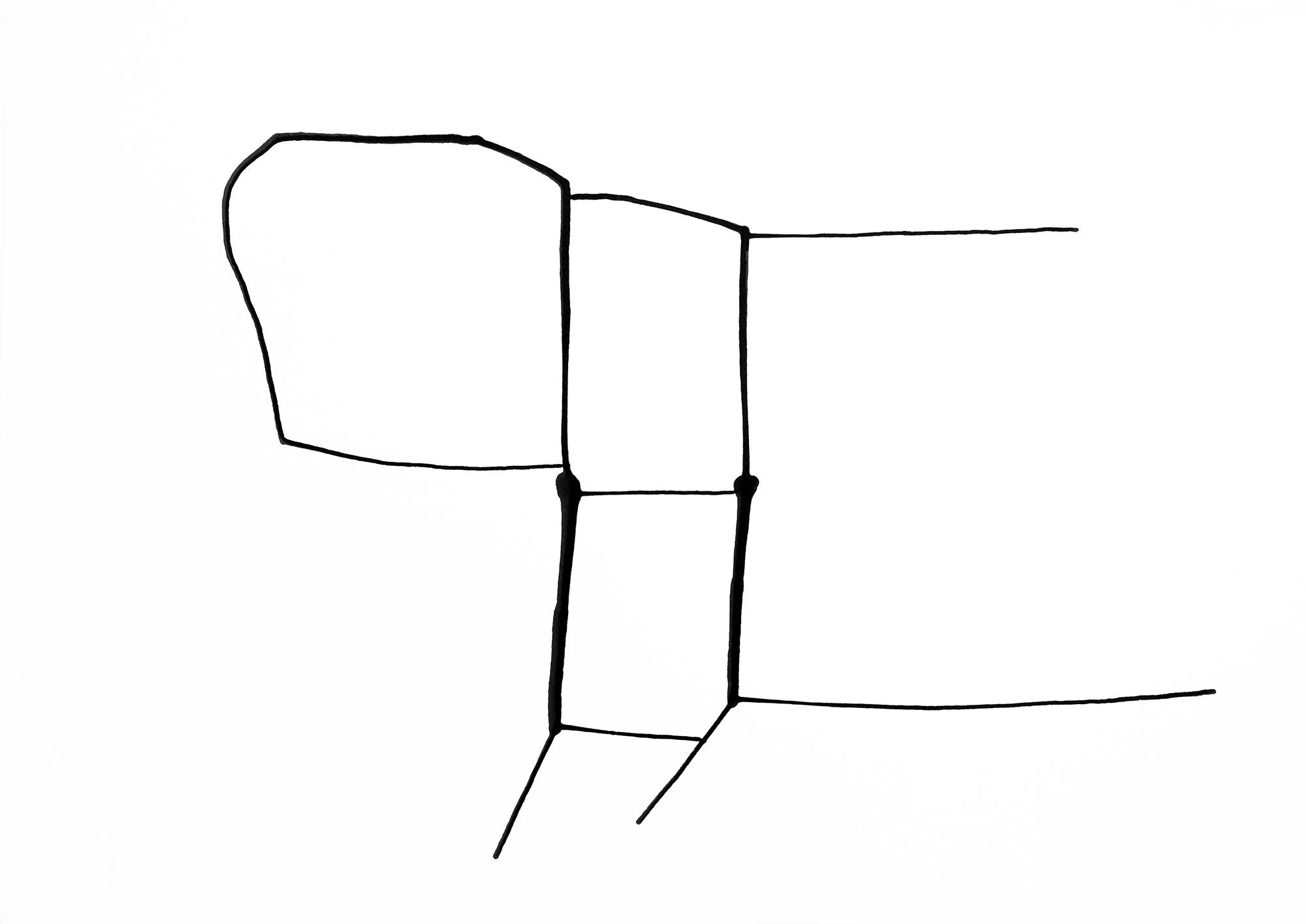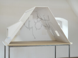 Bleistift auf weissem Bristolkarton, aufgezogen auf das Raummodell aus Depafit